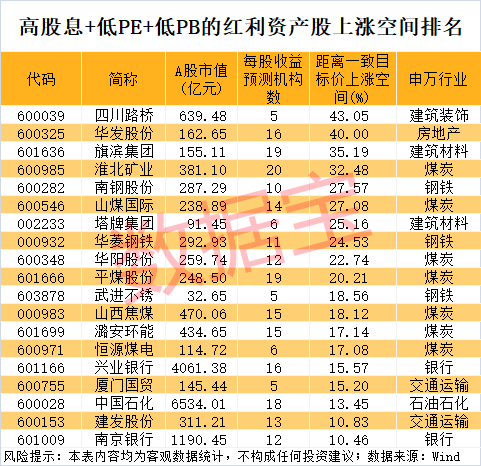 根据5家及以上机构一致预测,最新收盘价与机构一致预测目标价相比,10股上涨空间超20%,包括四川路桥、华发股份、旗滨集团、淮北矿业、南钢股份等。
