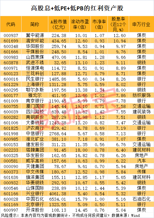 从股息率来看,6股近12个月的股息率超过9%,分别是冀中能源、潞安环能、华阳股份、平煤股份、山西焦煤、武进不锈。